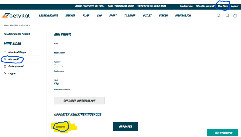 2. Legg inn registreringskode: Ottadalen