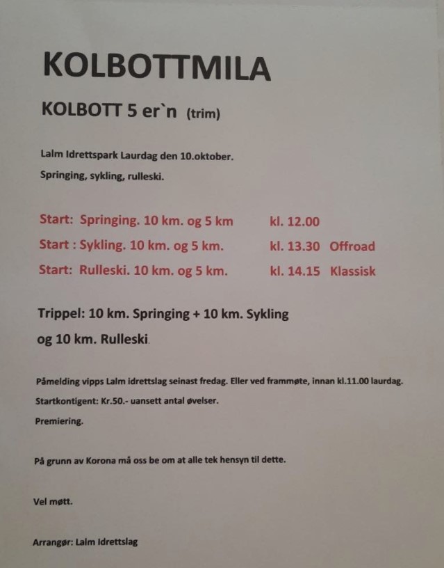 Siden det ikke blir Birkenritt i år, ønsker klubben å gjennomføre en sosial klubbtur fra Rena til Lillehammer via Birkentraseen. Vi har en buss med 16 plasser.