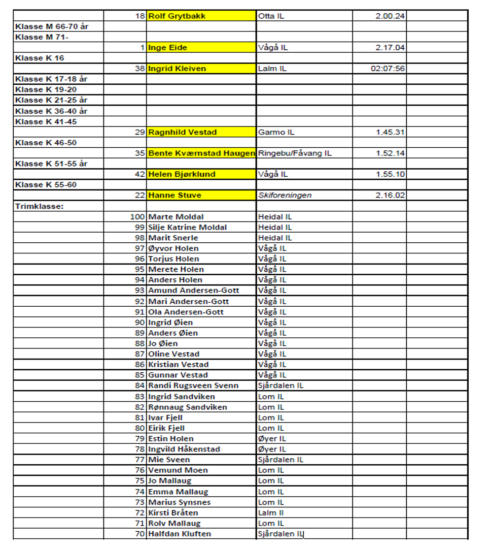 I følge resultatlistene har også Ola Hagen, Paul Holen, Thore Berntsen og Lars Blekastad fullført Lillehammer – Oslo.