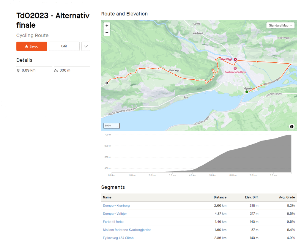 For dei som sykla rett, så er ruta er som i fjor, altså rundt vatnet. Erfaringen fra i fjor viser at det er vanskelig å hevde seg i toppen om ein legg turen innom Veodalen! Anbefaler å legge inn ruta fra Strava på sykkelcomputeren, eller sjå på kartet før rittet starter! Det blir noe merking, men den kan være mangelfull! Har du ikkje Strava? Da er det jammen på tide at du får det 🙂